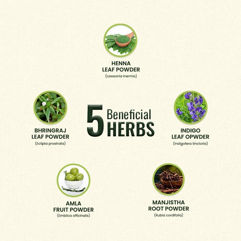 | Ingredients | Indigofera Tinctoria (Indigo)Lawsonia Inermis (Henna)Phyllanthus emblica (Amla)Eclipta prostrata (Bhringraj) |